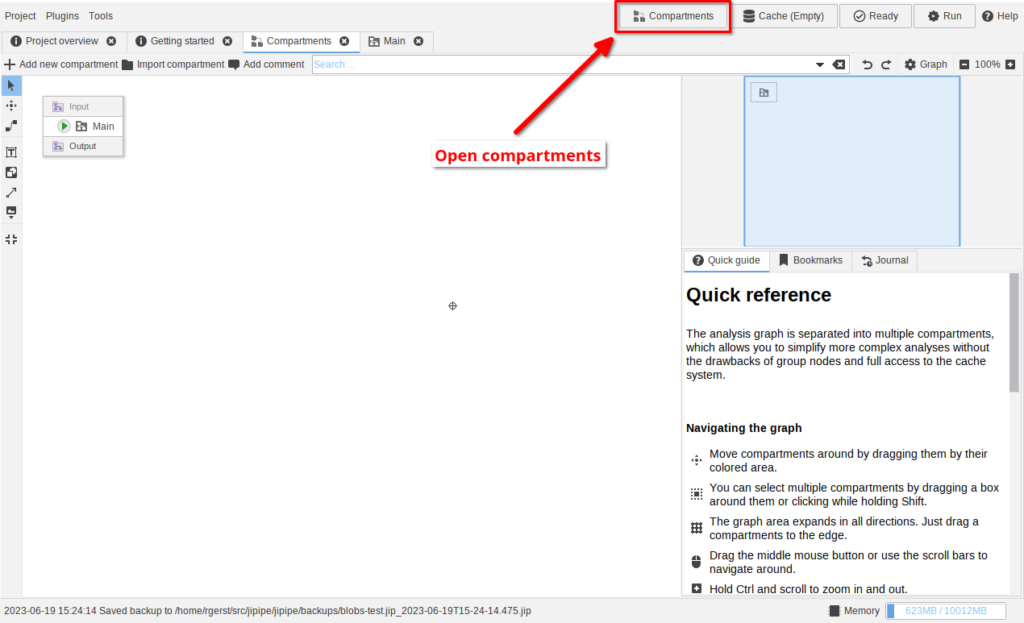 If users accidentally close the “Compartments” tab, it could only be re-opened by finding an entry in the Project menu. A button was added to switch to / reopen the compartments editor.