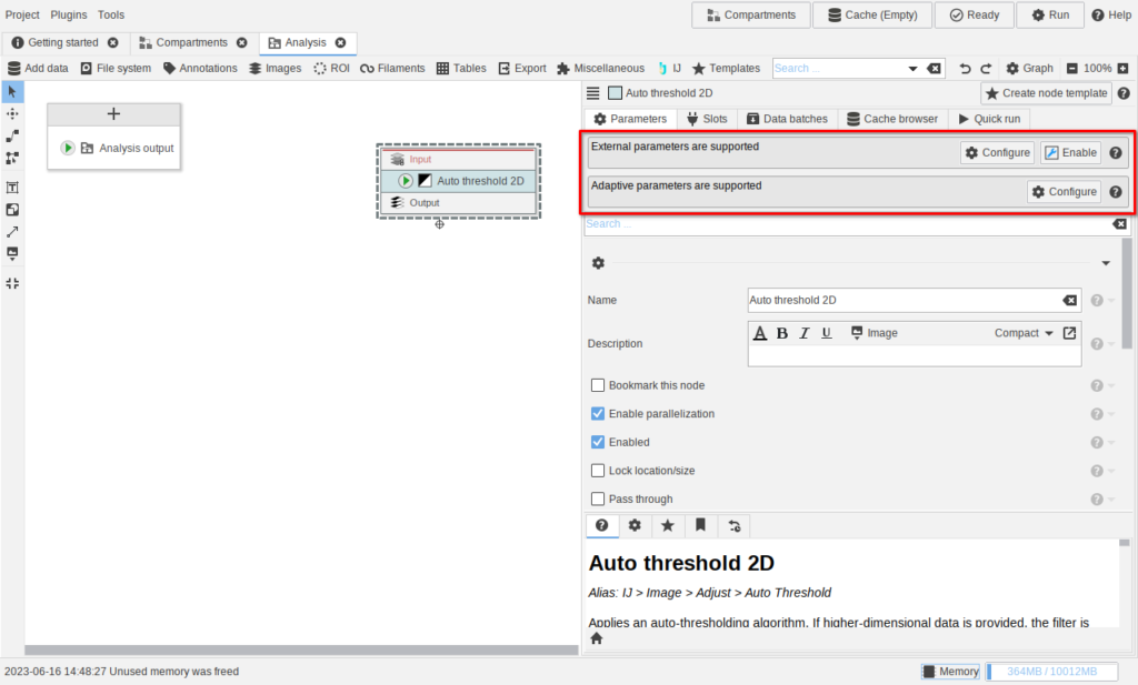 In older JIPipe versions, there was only one mode of annotating important parts of a pipeline via “Comment” nodes. This version introduces freely re-sizable annotation nodes that can be drawn by selecting the appropriate graph annotation tool in the left-hand graph tool bar. All operations in the graph tool bar now have a key bind.