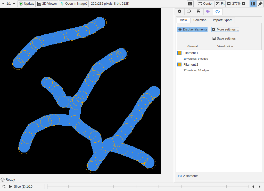 The 3D Filaments data type now has a custom display operation. Filaments can be managed in the “Filaments” tab of the image viewer.