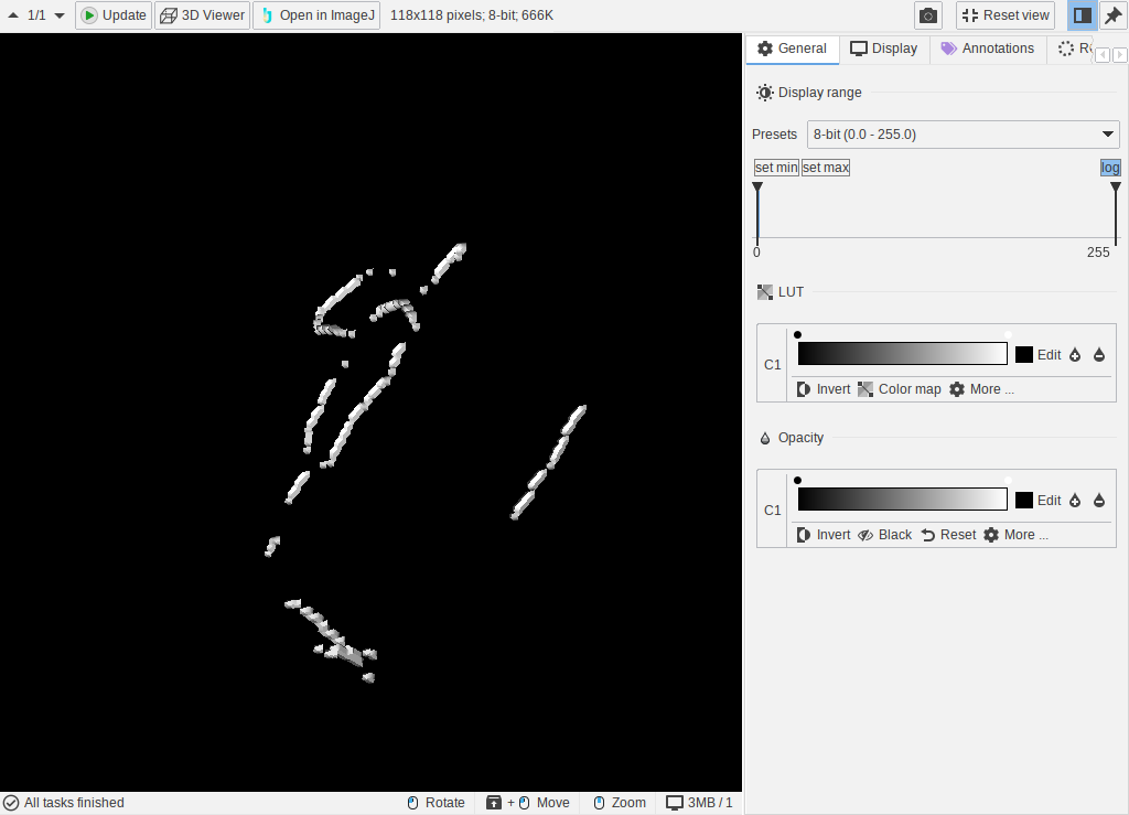 JIPipe can now generate static 3D scenes from masks, filaments, and 3D ROI. Scenes can be combined and exported into the Collada (*.dae) format.
